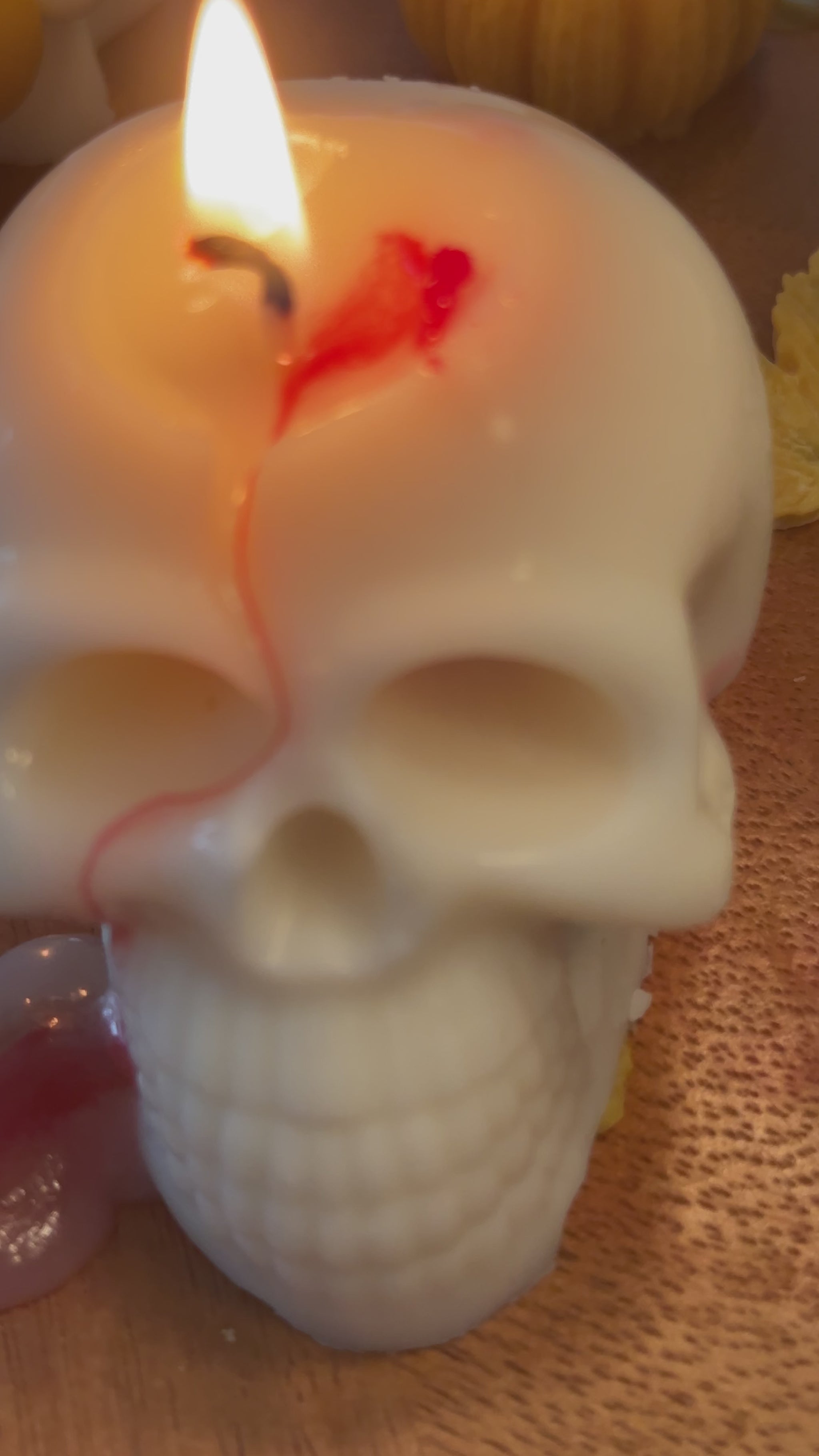 Crafted from pure European soy wax, this Bleeding Skeleton Candle offers an eerie, captivating effect as it "bleeds" when lit, enhancing any Halloween ambiance. With a clean, soot-free burn lasting up to 8 hours, it combines spooky aesthetics with premium quality for a hauntingly unique decoration.