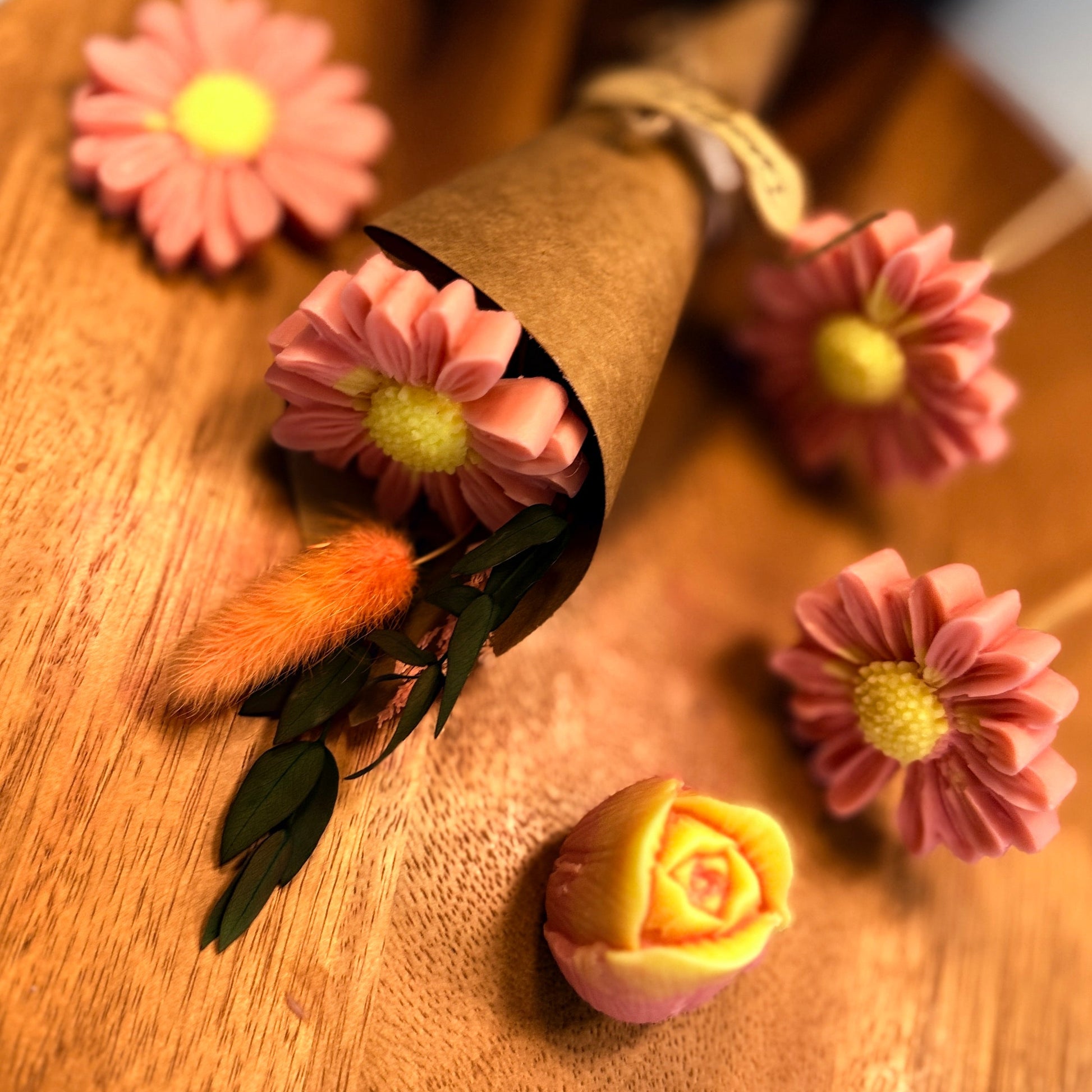 - Customisable Bouquet: mix daisies with tulips, roses, or other floral candles to create your own unique bouquet arrangement