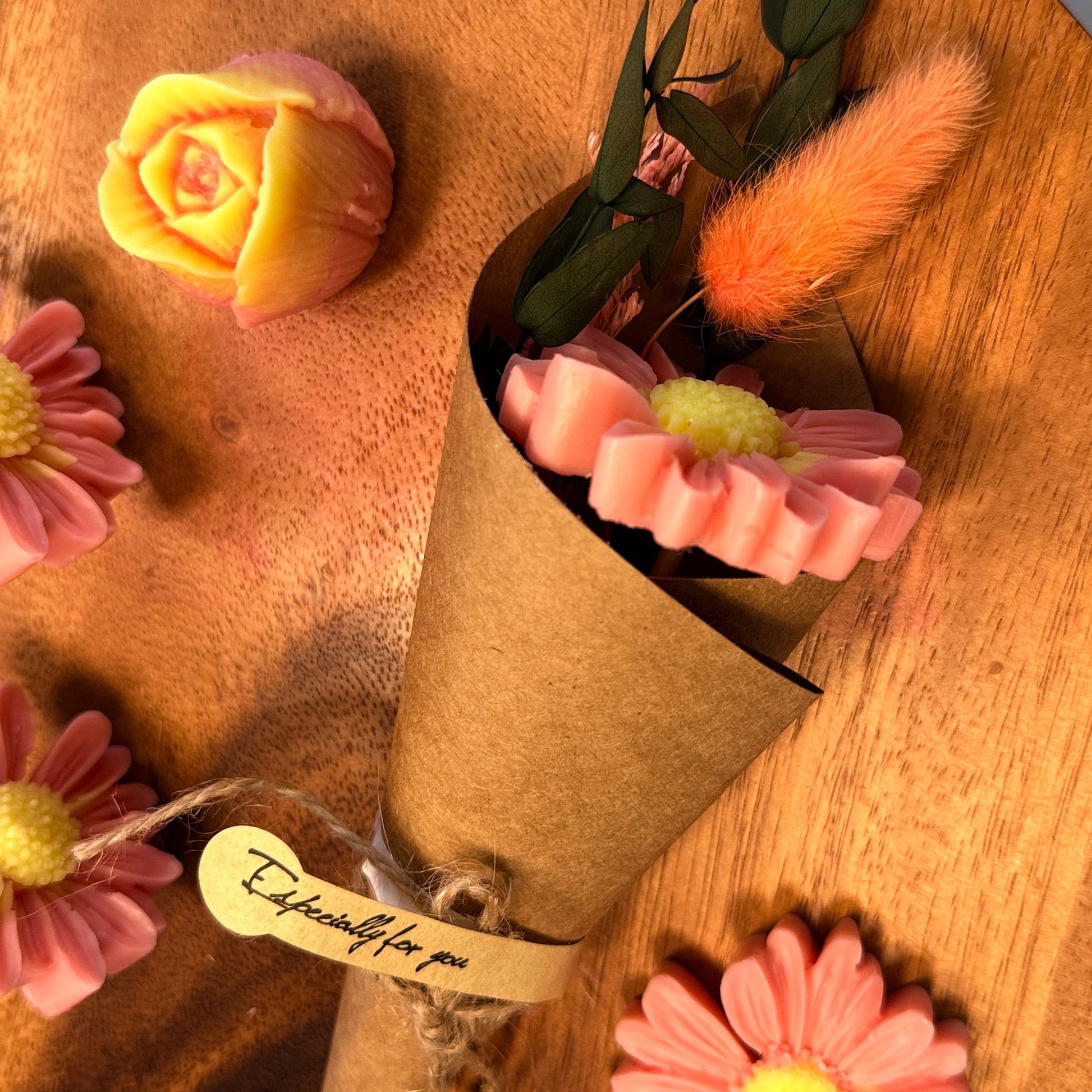 š± Each daisy candle is hand-poured with care, ensuring a smooth, long-lasting burn while adding a touch of floral beauty to any setting. The bouquet option allows you to personalise your arrangement, making it a stunning centrepiece or a gift full of meaning.