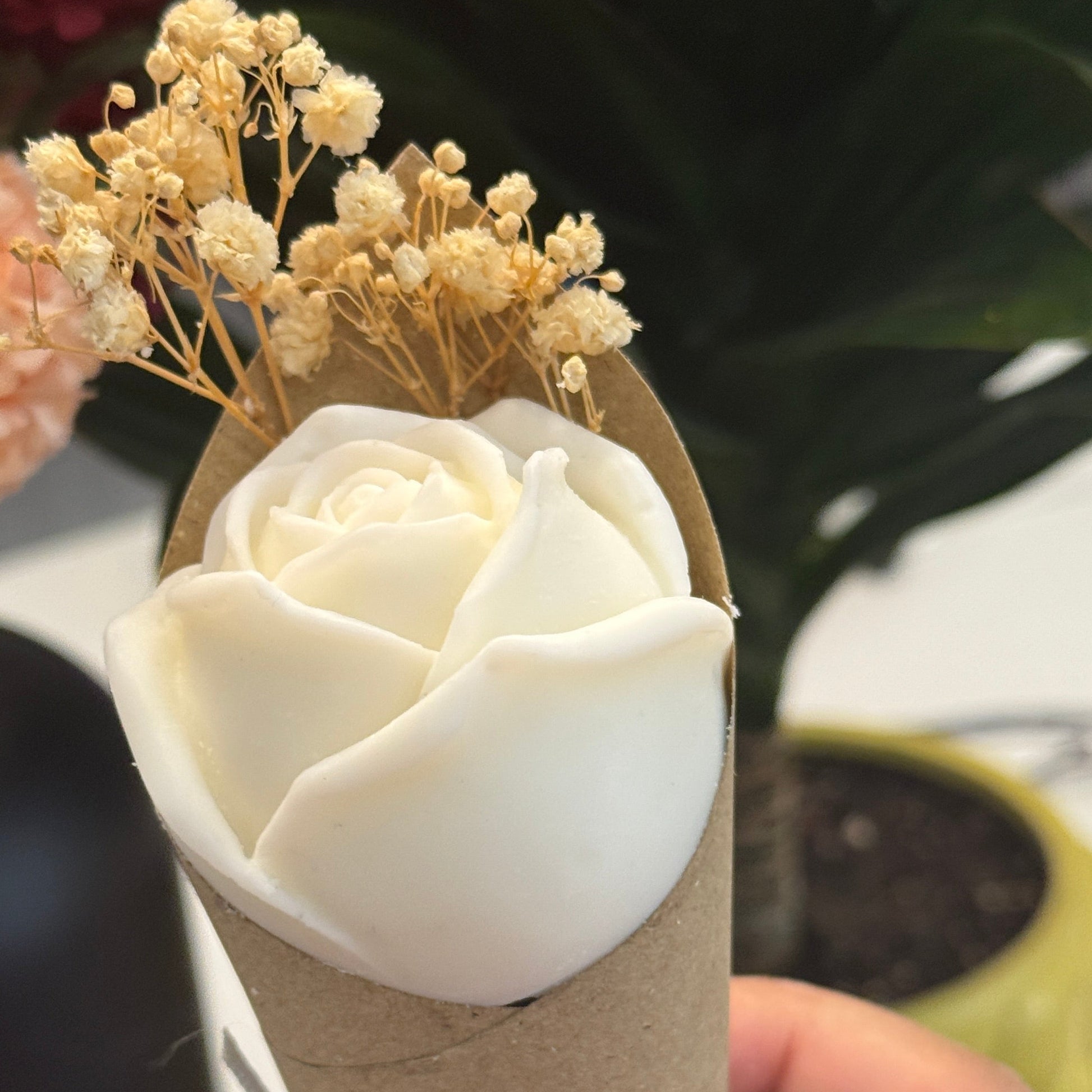 Illuminate your space with elegance! Each candle is hand-poured using natural soy wax and features a beautiful single flower embedded in the wax, creating a delicate and unique centerpiece.